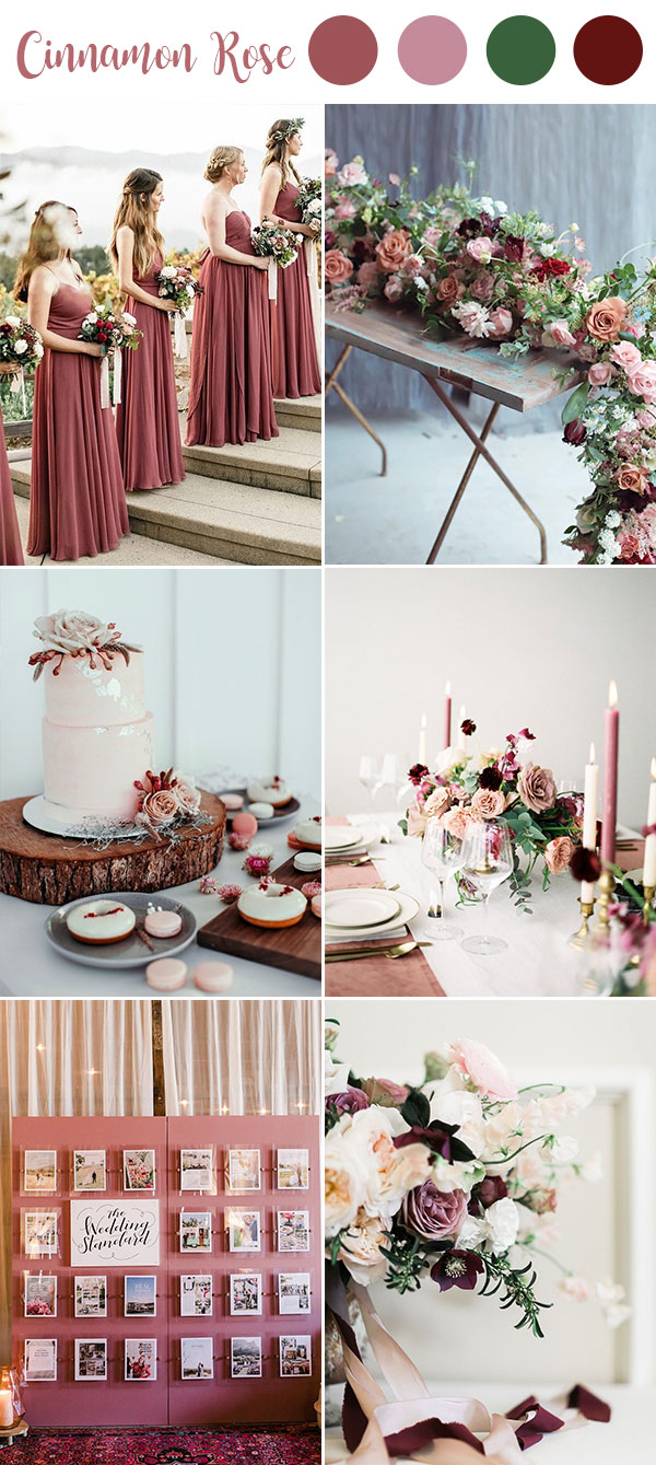 It might not be Pantone’s beloved color of the year, but around these parts, cinnamon rose is having a pretty major moment. A mix of burgundy and dusty rose, this subtle hue is making it works with any season. So, we rounded up a few of our favorite wedding ideas in cinnamon rose. From bridesmaid dresses and bridal dress to wedding decoration and wedding bouquets, get inspired by our favorite wedding ideas below.